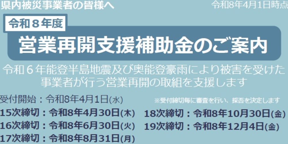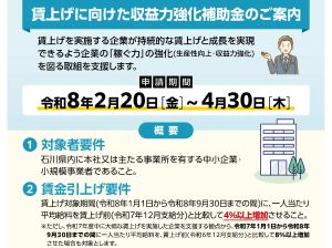 石川県賃上げに向けた収益力強化補助金の公募が開始されました