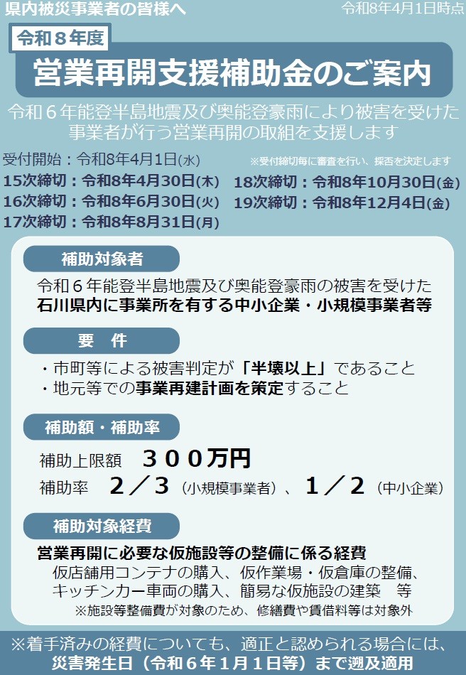 詳細は石川県ホームページをご覧ください。