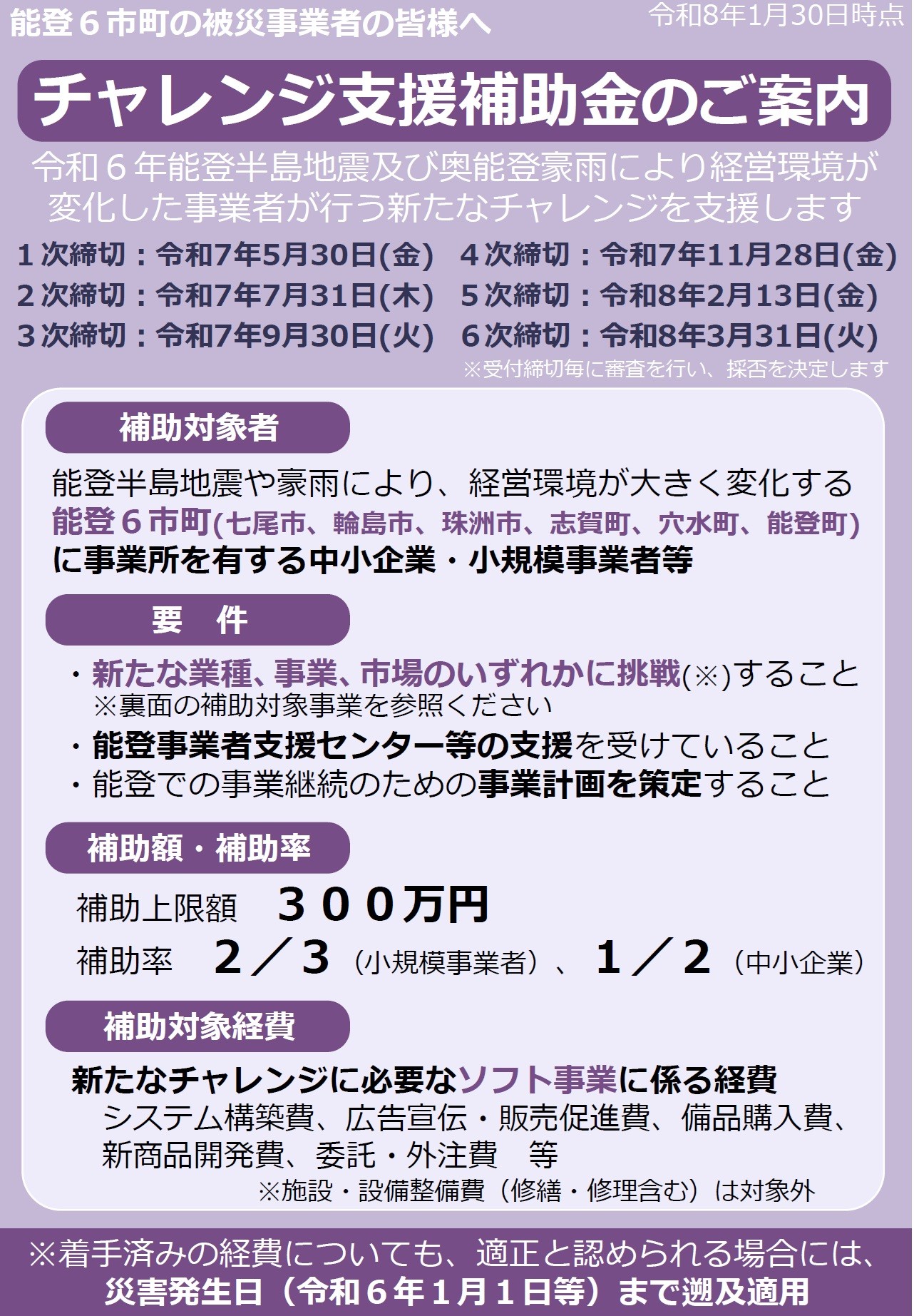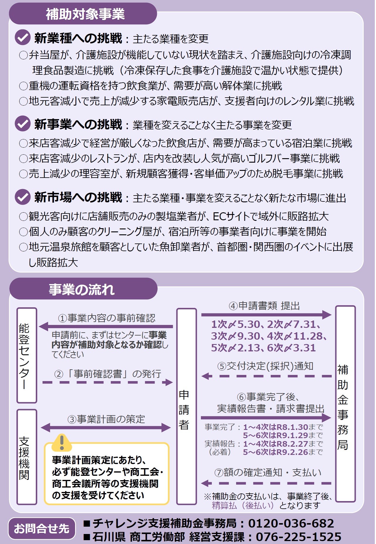 【チャレンジ支援補助金事務局】 フリーダイヤル:0120-036-682(土日祝日を除く10:00~17:00) 住 所:〒920-8203 |