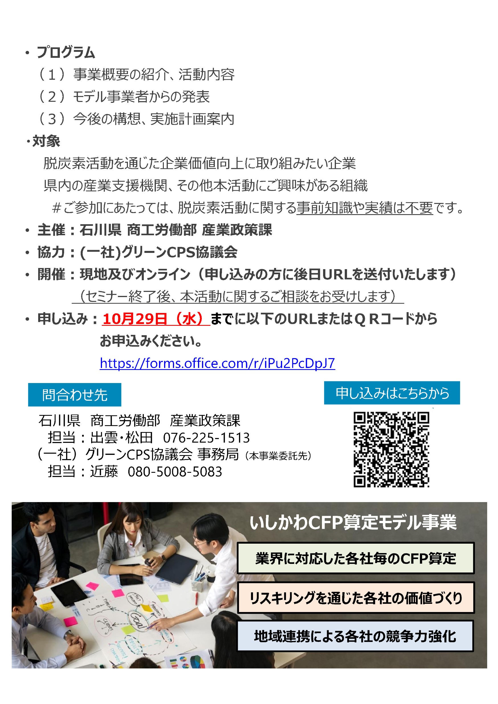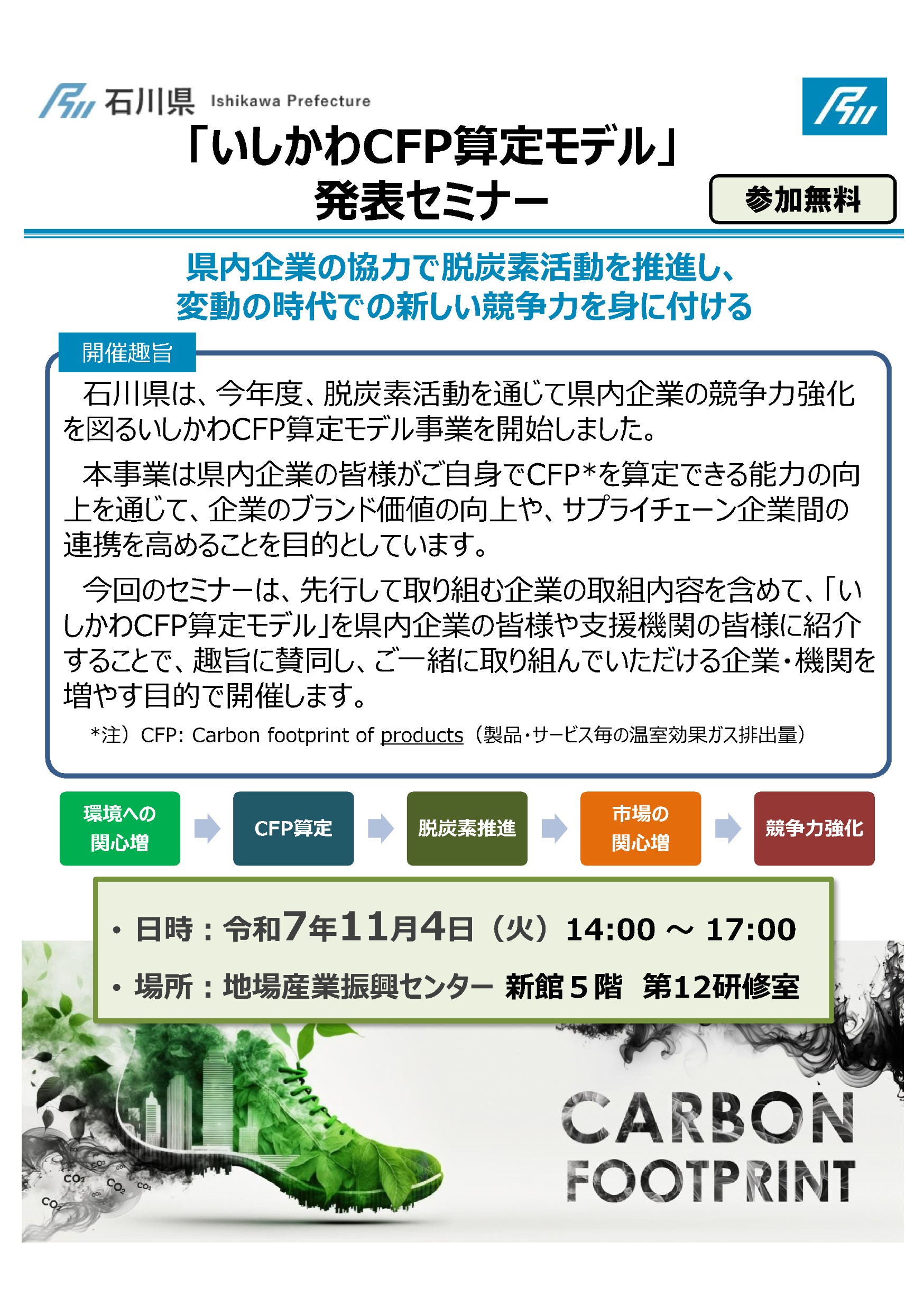 「いしかわCFP算定モデル」発表セミナーのご案内