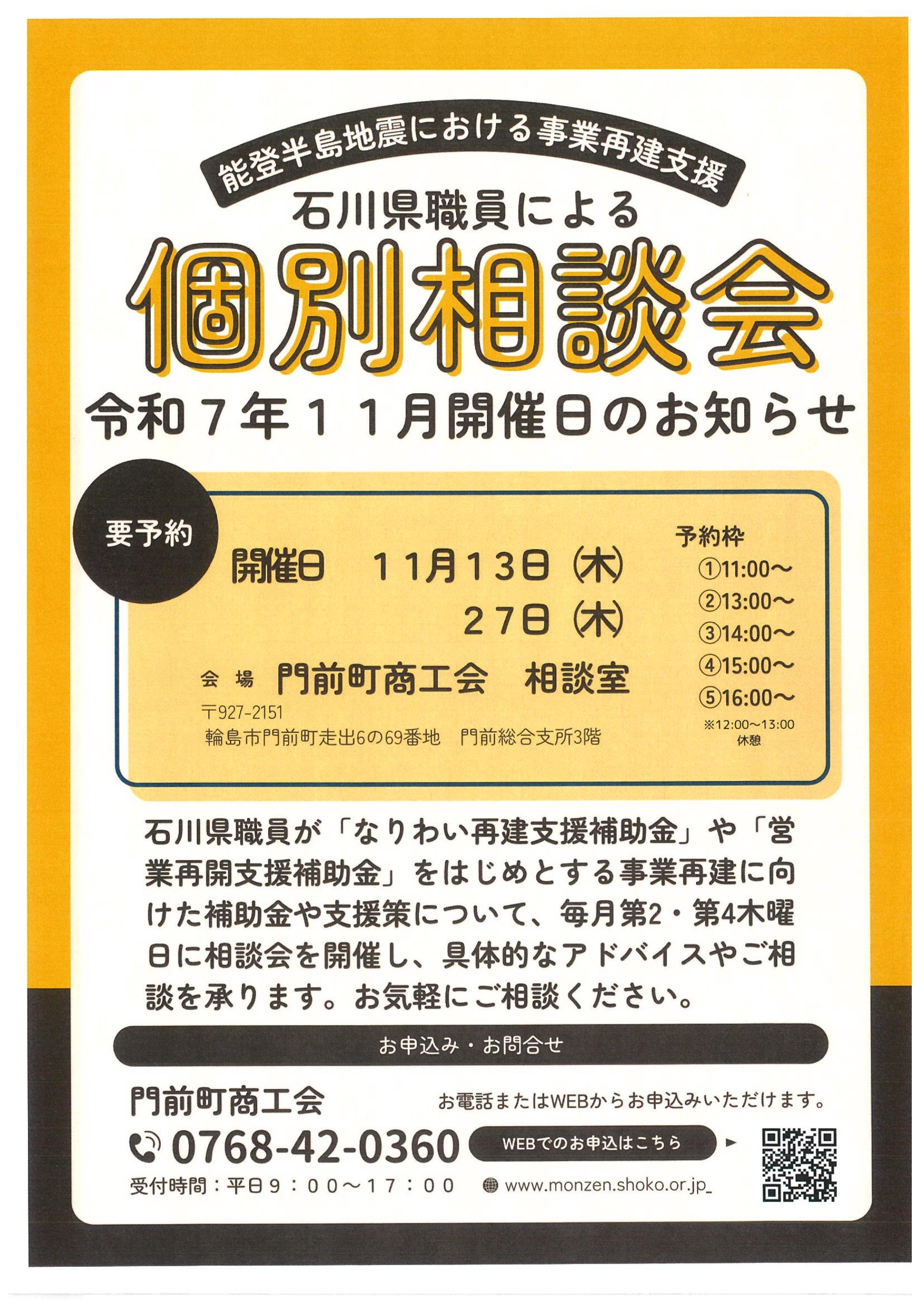 川県職員による「なりわい再建支援補助金」や「営業再開支援補助金」を中心とした事業再建に向けた相談会を、下記のとおりに開催いたします。