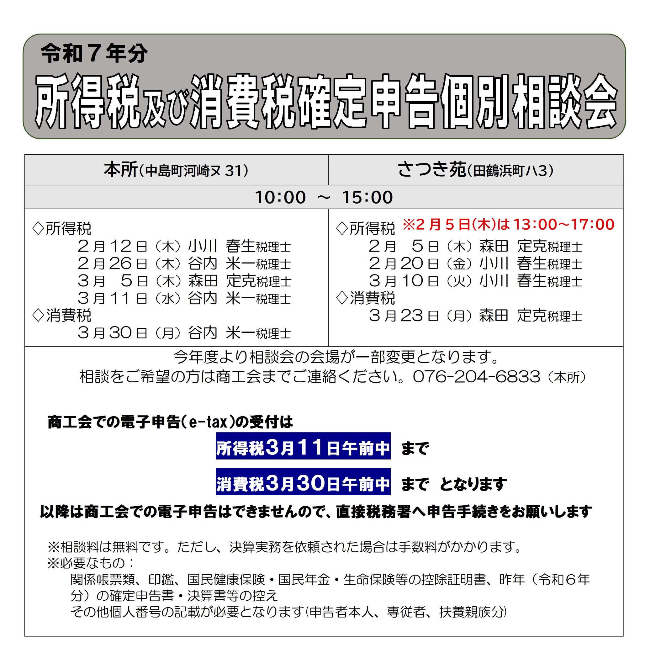 所得税及び消費税確定申告個別相談会