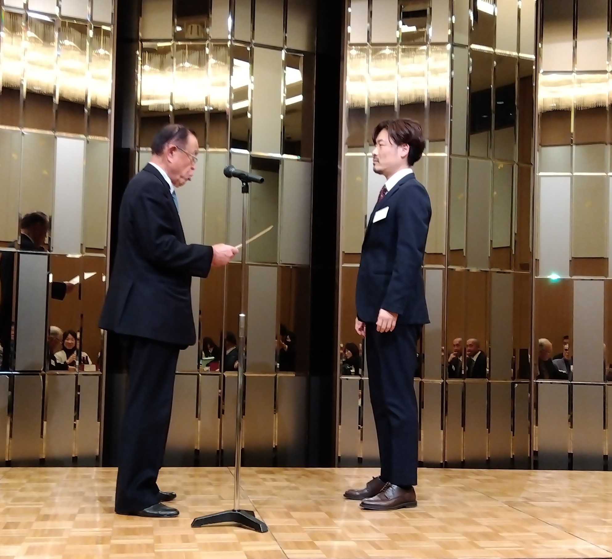 その後、中小企業診断士の中川義崇先生と、コンサルティング業務を専業としているつぐまたかこ先生へ外部審査員として審査を依頼しました。お二人それぞれの視点による厳正な審査の結果、ベスト5を決定し、令和8年1月28日(水)に新春懇親会「Welcome2026」(於:ANAクラウンプラザホテル金沢)の席上で表彰式を行いました。