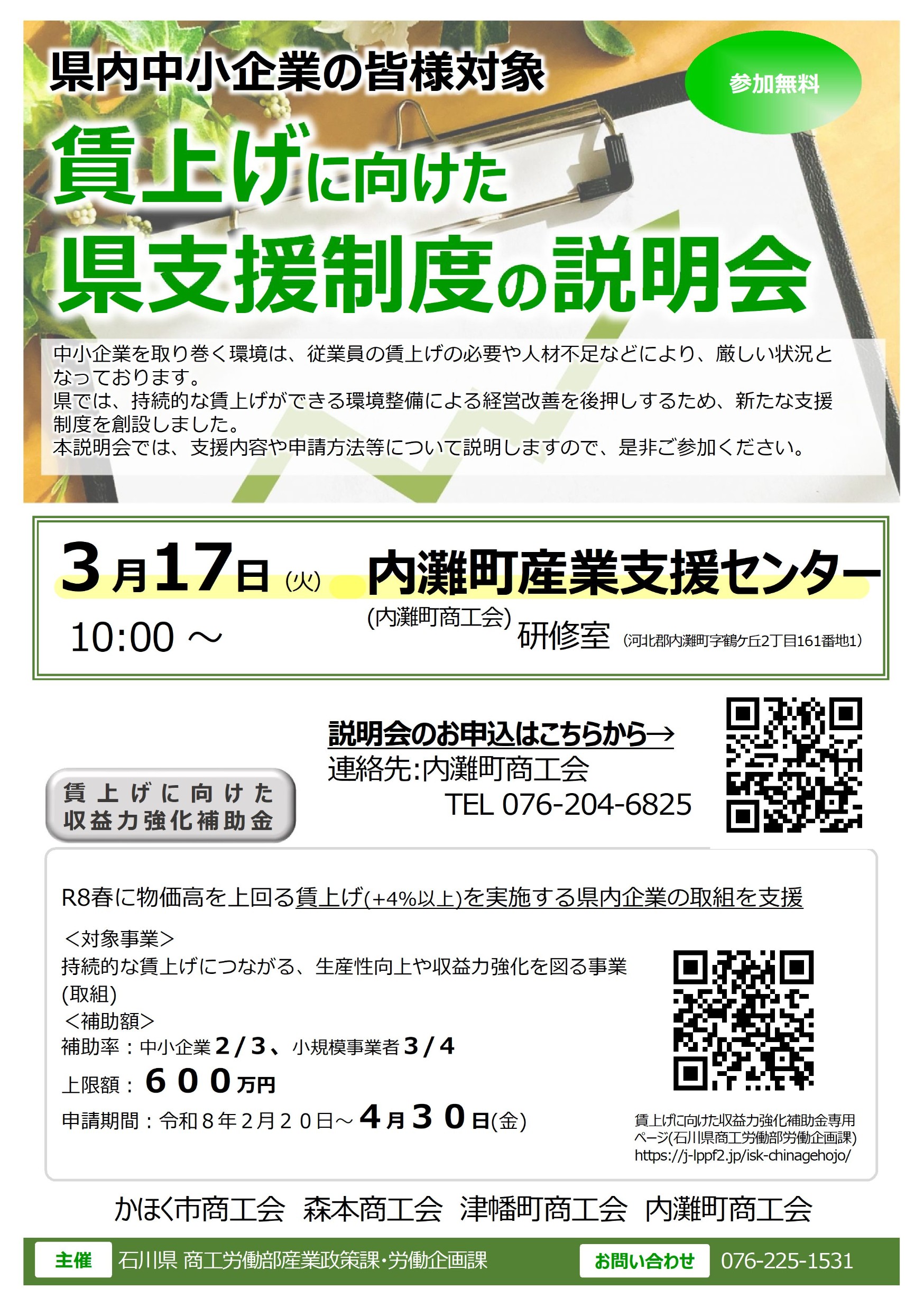 【3/17(火)】賃上げに向けた県支援制度の説明会
