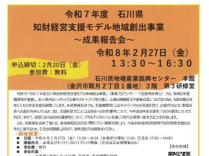 【能美市商工会】 【令和8年2月27日(金)開催】特許庁「令和7年度石川県知財経営支援モデル地域創出事業」成果報告会について