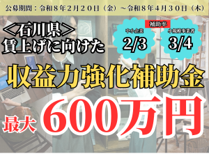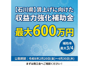 【山中商工会】 【最大補助率3/4】石川県「賃上げ・収益力強化補助金」公募開始!相談予約受付中