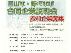【鶴来商工会】 白山市・野々市市合同企業説明会