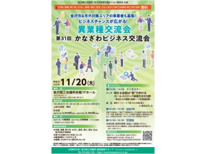 「金沢市&市外対象エリアの事業者も募集! ビジネスチャンスが広がる!異業種交流会 第31回 かなざわビジネス交流会」のご案内