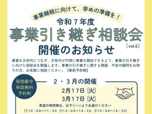 【鶴来商工会】 事業継続に向けて、早めの準備を!事業承継・引継個別相談会のご案内